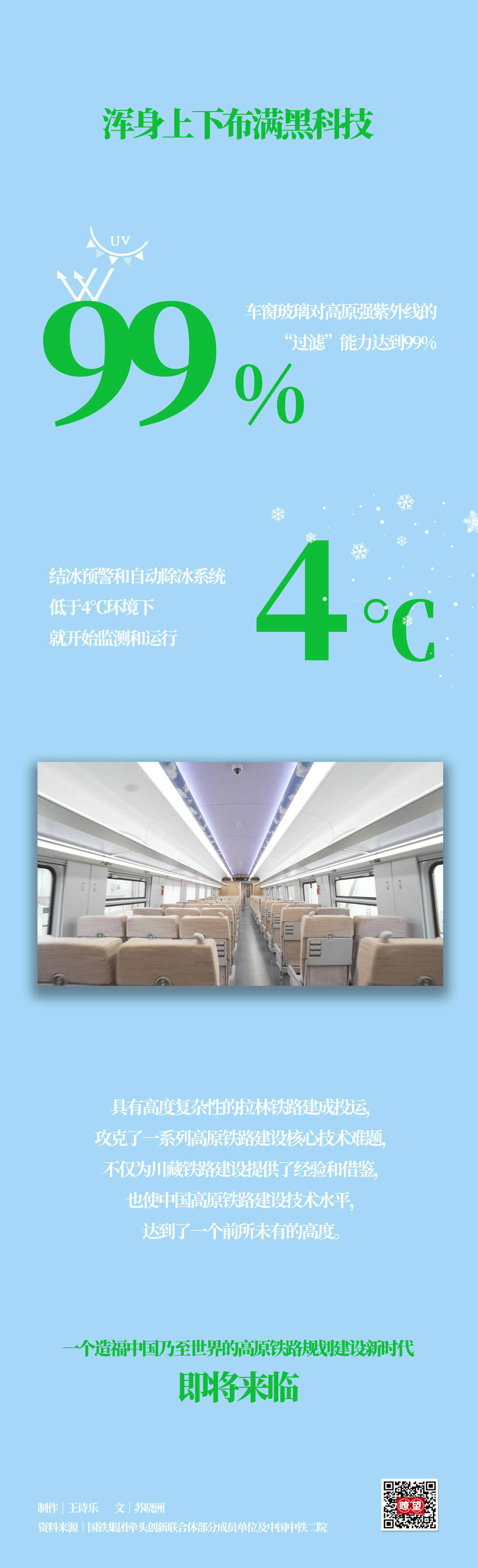 全车部署弥散式供氧系统,能避免司乘人员因缺氧发生“高反”;车厢有足够的气密性,供氧系统、通风系统和空气净化系统运转自如;