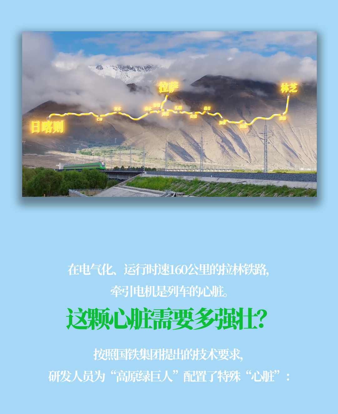 在电气化、运行时速160公里的拉林铁路,牵引电机是列车的心脏。
