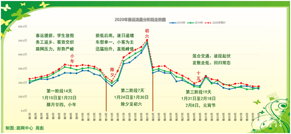 对历年春运流量数据和运行态势比较分析,2020年春运可划分为三个阶段: