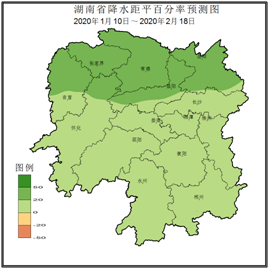 预计2020年春运期间(1月10日~2月28日)我省整体偏暖偏湿,平均气温为5~9℃,其中湘东南较常年同期偏高1℃左右(图1);总降水量湘北为60~140毫米,较常年同期偏多2~3成,其他地区为100~150毫米,较常年同期偏多1成左右。(图2)。