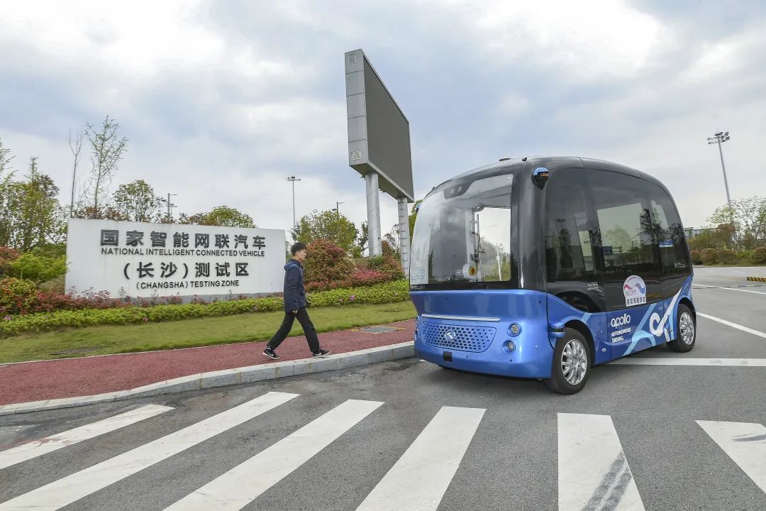 ▲国家智能网联汽车(长沙)测试区,安全员登上无人驾驶巴士——“阿波龙”。来源:湖南日报湘视频道
