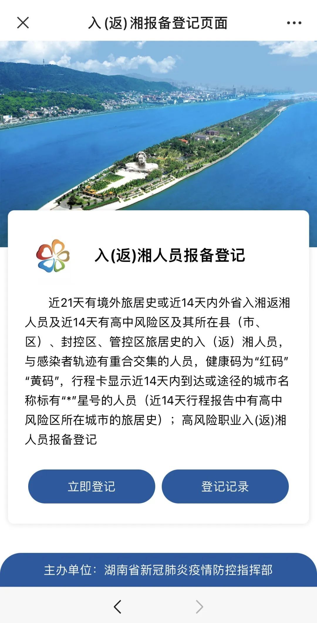 “五一”小长假即将来临。鉴于当前疫情防控形势严峻复杂,我省疫情外防输入压力持续加大。为有效控制和降低疫情输入和传播风险,保障群众安全、有序度过“五一”假期,湖南省疾控中心紧急提示:所有入(返)湘人员,必须提前通过“湖南居民健康卡—入(返)湘报备登记”、 目的地报备小程序等程序报备行程,主动向目的地单位、村(社区)报备,并持48小时内核酸阴性证明入(返)湘,配合落实相关防控措施。