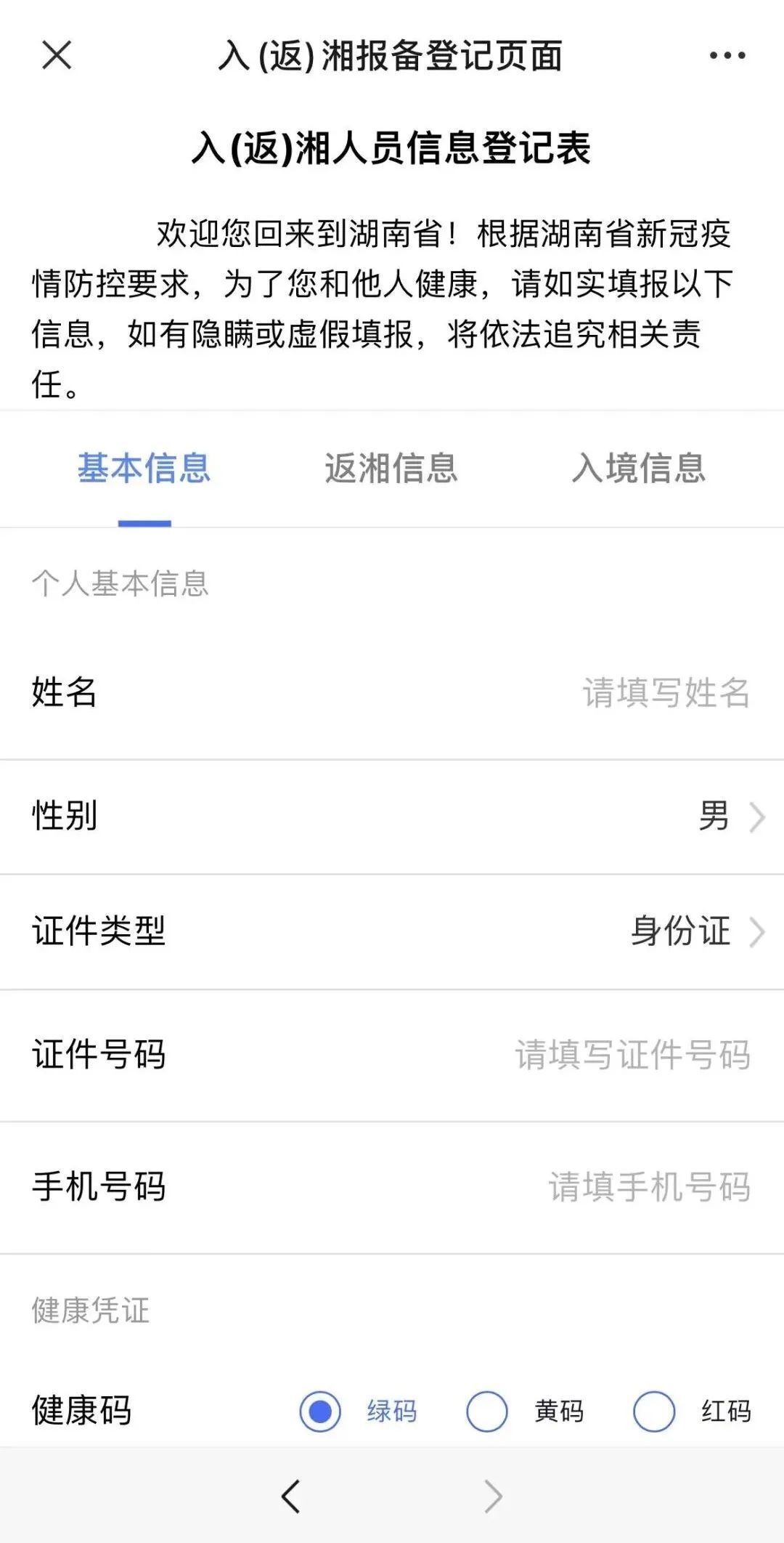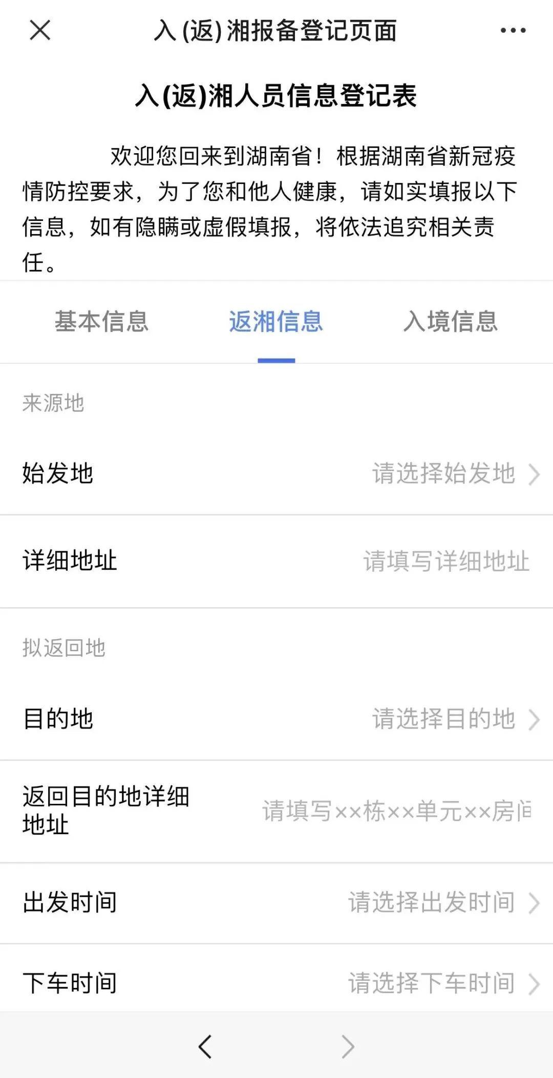 进入“返湘信息”界面,按要求填写,并点击下一步。