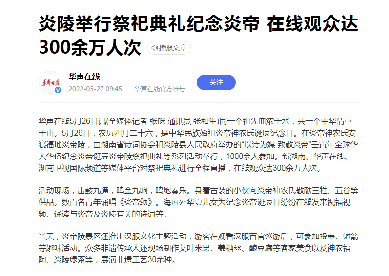 “以诗为媒 致敬炎帝”壬寅年全球华人华侨纪念炎帝诞辰炎帝陵祭祀典礼系列活动得到各级媒体大力宣传。