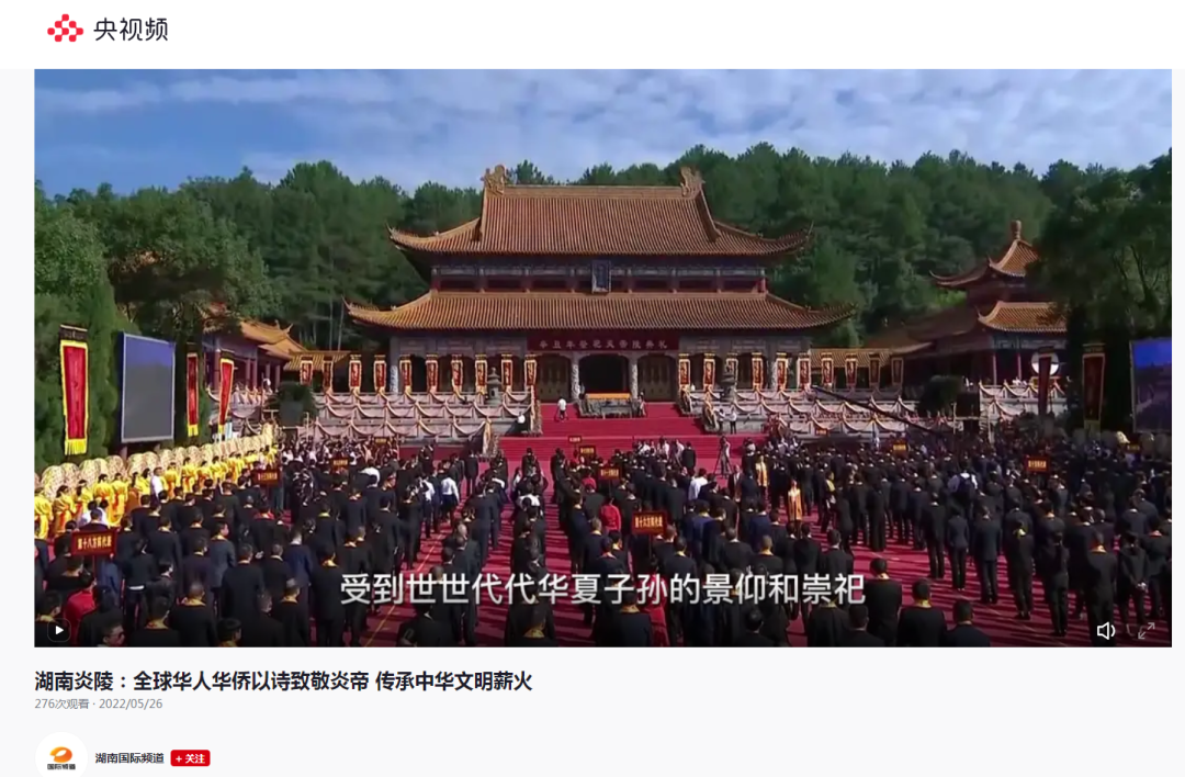 26日上午9点09分,“以诗为媒 致敬炎帝”壬寅年全球华人华侨纪念炎帝诞辰炎帝陵祭祀典礼圆满举行,吸引300余万人次在线观看,湖南卫视对活动进行了报道。