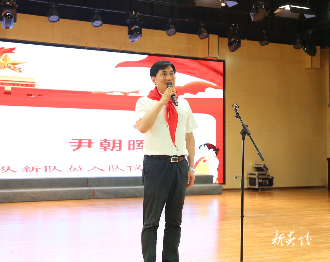 在芙蓉学校报告厅,尹朝晖参加了芙蓉学校新少先队员的入队仪式,并代表县委、县政府向全县少年儿童致以节日的问候,祝大家学习进步、健康成长。尹朝晖指出,少年智则国智,少年富则国富,少年强则国强。个人命运与国家命运、民族未来紧密相连,希望每一位同学都要做志存高远的好少年,树立远大人生理想,朝着目标奋发努力、自强不息。要做品德高尚的好少年,听从老师和父母的教导,端正态度、努力学习、见贤思齐、遵纪守规,努力成为一个德行高尚的人。要做努力学习的好少年,珍惜学习机会,实现德智体美劳全面发展,将来成为对国家、对社会、对家庭有贡献的人。要做热爱劳动的好少年,养成“幸福要靠双手来创造”的思想,主动参加劳动,锻炼自己的动手能力,培养自己的创造能力,成为一个有能力、有理想、有抱负的国家栋梁之才。