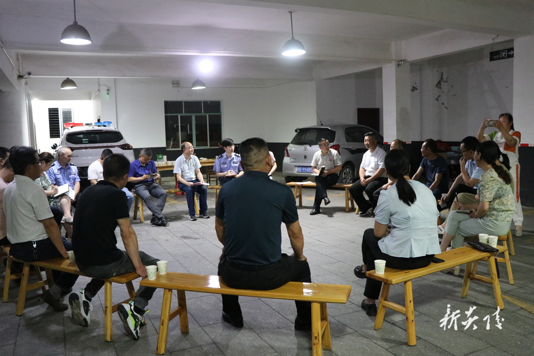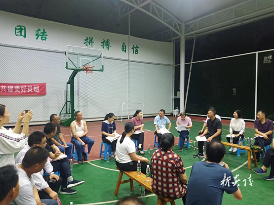县人民检察院、市场监管局、炎陵中学、交警队等部门负责人到霞阳镇东区社区第三网格召开“酃峰夜话”屋场会。
