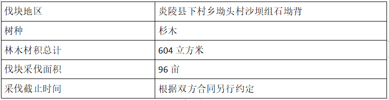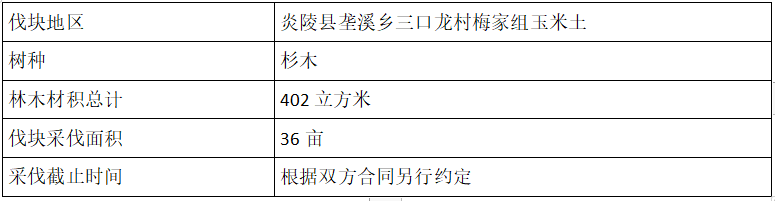 受湖南省炎陵县青石冈国有林场委托,将4处山场林地林木采伐权在株洲农交中心炎陵分中心公开交易,现将相关事宜公告如下: