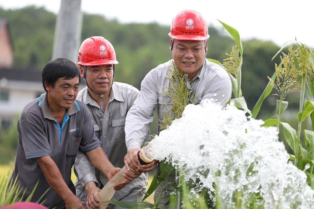 8月17日,国网新邵县供电公司组织共产党员服务队,在龙溪铺镇坳头村帮助村民安装灌溉设备,并全面排查供电线路、供水设备安全用电隐患。谢丽英摄