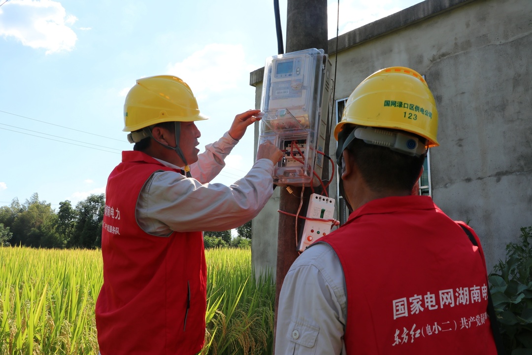 国网株洲渌口区供电公司淦田供电所员工对渌口区龙门镇龙门村兴旺组胜利桥台区、龙门镇洪塘村刘家组刘家台区抽水表计进行巡视检查,确保农村抗旱用电。国网湖南电力供图