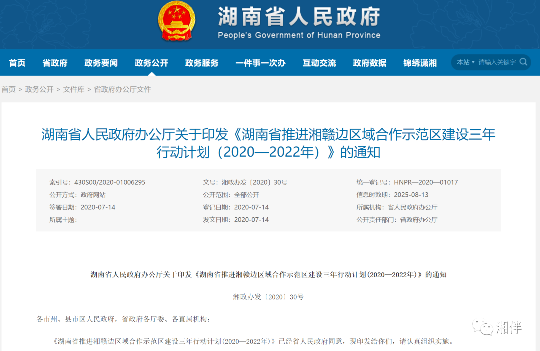 目前进展如何?《三年行动计划》中的内容有哪些新突破?2018年11月,中共中央、国务院出台《关于建立更加有效的区域协调发展新机制的意见》,明确提出“加强省际交界地区合作,支持湘赣等省际交界地区合作发展”。同为红色热土的湘赣两省从这时开始被组成“官配CP”,为接下来的合作奠定了基础。去年5月,湘赣边区域合作示范区建设第一次联席会议在南昌举行。这次会议开得非常“走心”,审议了《湘赣边区域合作示范区发展规划建议》和渝长厦铁路长赣段建设、常岳昌铁路前期工作、湘赣边红色文化旅游合作、萍水(渌水)河流域治理、现代农业协同发展行动等方案。第一次联席会议后,示范区建设从“酝酿期”进入“蜜月期”,由“愿景图”变成“施工图”,三个多月后又紧接着召开了第二次联席会议,推进各重点事项落实。湖南这边,对创建示范区、促进革命老区乡村振兴的重视也是显而易见的。创建示范区作为一项重要工作连续两年写进了湖南《政府工作报告》。今年的全国两会上,湖南代表团以集体名义建议支持湖南革命老区振兴发展,湖南、江西、广西、湖北、贵州、四川六省政协主席向大会提交一份提案,主题也是关于促进革命老区乡村振兴的。为了与“官配CP”江西相处得更愉快,让双方能够发挥共同优势发展得更好,这段时间,湖南为未来三年推进示范区建设画好了蓝图,也就是我们今天要说的《三年行动计划》。湘伴君仔细地看了《三年行动计划》,两个字形容:给力!总的来说,这份文件聚焦基础设施互通、红色文化传承、产业协作振兴、城乡协调发展、生态环境共保和公共服务共享六大领域,提出到2022年示范区建设的工作目标,干货满满。来拎拎重点↓↓↓作为区域合作的基础,交通基础设施联通十分重要。文件提出,打造“一环五干两轨一网”综合交通网络,实现三级公路直达国家3A级以上景区。