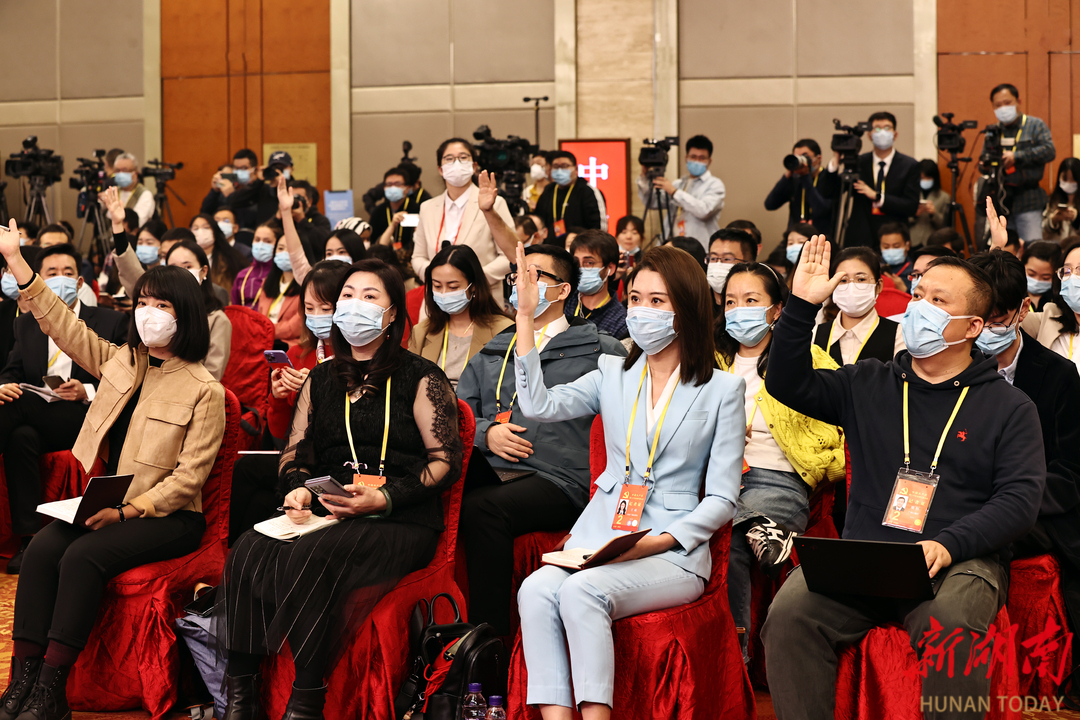 (记者在分会场举手提问。以上图片均由 湖南日报全媒体记者刘尚文摄)