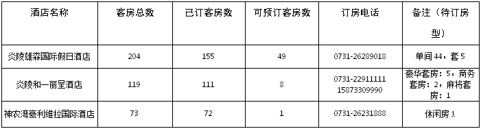 炎陵县旅游旺季主要接待酒店客房预定情况表(2020年8月15日)