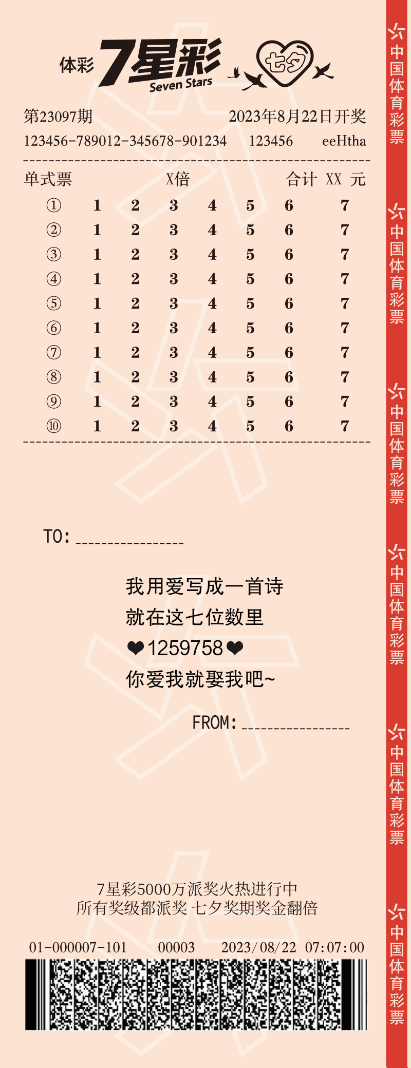 七夕浪漫定制票,7星彩邀您表白专属心意!