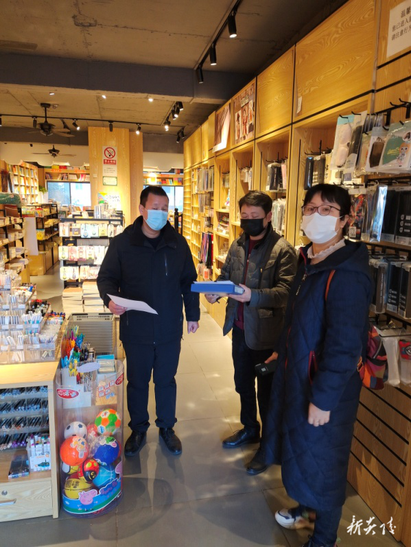 检查组一行先后来到新华书店、新星书店、喜洋洋书店、鑫诚印务中心、鑫百汇文印、理光文印、神农印刷、鑫星影院等企业生产车间和营业场所实地查看,每到一处,都认真查看了各经营场所的经营情况和疫情防控措施落实情况,现场送发了《关于落实好新冠肺炎疫情防护措施的通知》,要求各场所要按照文件要求,设置检测台,安排专人值班,对进入场所的顾客要求戴口罩,并进行健康码查验和体温监测;所有员工务必佩戴口罩,每日要对场所进行消毒通风,如发现健康码可体温异常者,要及时向有关部门报告。检查中发现,大部分经营场所都已按照疫情防控常态化要求将防疫措施落实到位,但仍有小部分经营者思想意识麻痹,对疫情防控重视不够,检查组责令其限期整改到位。
