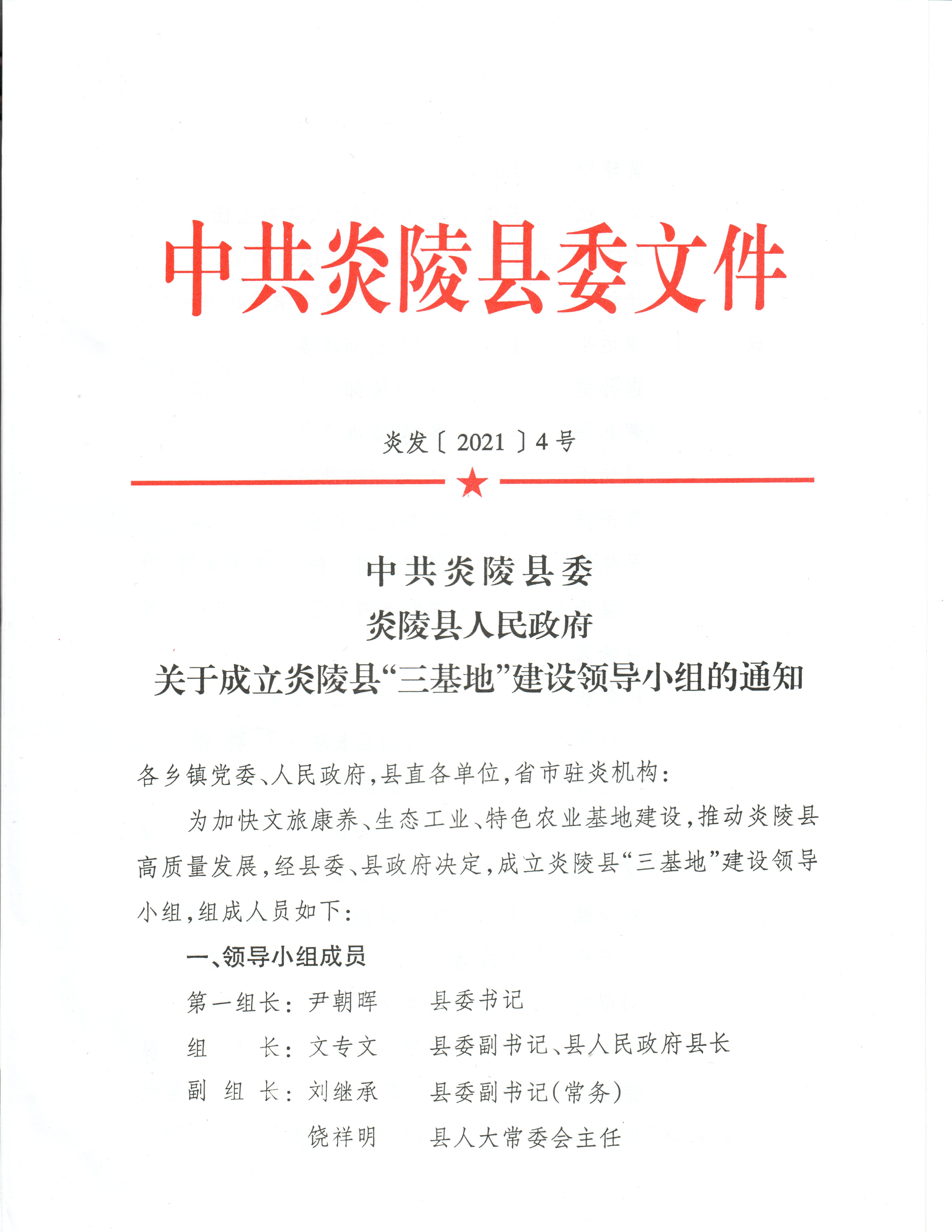 中共炎陵县委 炎陵县人民政府 关于成立炎陵县“三基地”建设领导小组的通知